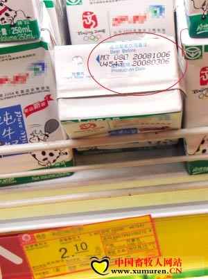 現提供給大家一個鑒別真正牛奶生產日期方法,可以防止上當買到過期牛奶,這就能夠保證您的家人健康。 一般牛奶包裝上會有一個生產日期(那是給消費者看的)。還有一個英文和數字組成的暗號,這組暗碼才是真正的牛奶生產日期。那么怎么才能識別企業的暗號了解到商品牛奶的真正生產日期呢?牛奶的包裝上一般印刷:生產日期:08 05 10 HDC8H,其中:生產日期:08 05 10(給消費者看的),大家都能看懂;暗碼:HDC8 H 。這個大家就都不知道什么意思了,其實這個才是牛奶的真正生產日期。這里的暗碼代表的內容是: 第一個英文字母代表年份:行業內規定 A:01年 B:02年 C:03年 D:04年 E:05年以此類推 H:08年...(有的時候年份會省略,只顯示幾月,幾日)。 第二個英文字母代表月份:行業內規定 A:01月 B:02月 C:03月 D:04月 E:05月 以此類推 F:06月...K:11月 L:12月。 第三個英文字母和數字代表日期:行業內規定 1-9日前面加A:A1、A2、A3、A4、A5、A6、A7、A8、A9; 10-19日前面把1變成B:B0、B1、B2、B3、B4、B5、B6、B7、B8、B9; 20-29日前面把2變成C:C0、C1、C2、C3、C4、C5、C6、C7、C8、C9; 30-31日前面把3變成D:D0、D1 因此: HDC8 代表08年4月28日 這就說明包裝上打印的牛奶雖然是生產日期:08 05 10,其實該牛奶的真正生產日期是2008年4月28日 ,差了12天。 再舉一例: 生產日期 07 06 01(給消費者看的) 暗碼:GEB4 就表示真正的生產日期其實是07年5月14日 牛奶制品廠一天可以生產好幾個日期,舉例: 生產日期 08 09 19 暗碼:HIB1(08年9月11日) 生產日期 08 09 23 暗碼:HIB1(08年9月11日) 以上兩個包裝上的生產日期不同,但是真正的生產日期是一樣的,都是9月11日。 為什么中國的牛奶生產廠家要這樣辦呢?這不是欺詐消費者嗎?說起來還是中國特色造成的。 由于中國的牛奶生產廠家的技術條件不達標,牛奶中的細菌要比國外100的指標高幾倍,冬季是200左右,夏季是400左右,如果高溫殺菌又會把牛奶中的維生素等營養降低(國外用超濾技術就有質量保證),因此,為了降低成本中國奶制品工廠所產的牛奶往往保存時間較短,再加上儲存和運輸及商場調配的時間,如果把生產日期寫的真實了,可能剛擺上貨架就要到達失效期了,那就要取下扔掉!寫上假的生產日期就保護了牛奶生產廠家的經濟利益(只要包裝不出現鼓脹的現象,即使過期了也要繼續售賣,只要人吃了沒事就能掙錢這就是中國的特色)。以上兩個包裝上的生產日期不同,但是真正的生產日期是一樣的,都是9月11日。 為什么中國的牛奶生產廠家要這樣辦呢?這不是欺詐消費者嗎?說起來還是中國特色造成的。 由于中國的牛奶生產廠家的技術條件不達標,牛奶中的細菌要比國外100的指標高幾倍,冬季是200左右,夏季是400左右,如果高溫殺菌又會把牛奶中的維生素等營養降低(國外用超濾技術就有質量保證),因此,為了降低成本中國奶制品工廠所產的牛奶往往保存時間較短,再加上儲存和運輸及商場調配的時間,如果把生產日期寫的真實了,可能剛擺上貨架就要到達失效期了,那就要取下扔掉!寫上假的生產日期就保護了牛奶生產廠家的經濟利益(只要包裝不出現鼓脹的現象,即使過期了也要繼續售賣,只要人吃了沒事就能掙錢這就是中國的特色)。以上兩個包裝上的生產日期不同,但是真正的生產日期是一樣的,都是9月11日。到9月17日左后就先把包裝上的9月19號的牛奶送到各個超市,賣 完后到9月21日左右再把包裝上是9月23號的牛奶送到超市,其實都是9月11日生產的。也就是說我們在9月11日這一天同時生產了9月19日和9月23 日的牛奶。更有的廠家有時一天生產4,5種不同的日期。 本文來源:中國農業全搜索網