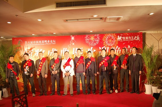 2011年3月26日上午8:00,由鐵騎力士集團(tuán)承辦的第六屆中國(guó)西部鴨業(yè)論壇在美麗的畜牧科技城榮昌成功拉開(kāi)了帷幕。 來(lái)自全國(guó)的380名參會(huì)嘉賓帶著喜悅和激動(dòng)的心情在各大區(qū)帶隊(duì)人員的組織下,有序的進(jìn)入位于榮昌的和庭大酒店一樓大廳進(jìn)行了報(bào)道,并積極的在簽名墻上留下姓名作念。 2011年3月26日下午2:00,第六屆西部鴨業(yè)論壇大會(huì)正式進(jìn)行。 本次大會(huì)由重慶電視臺(tái)主持人鐘玲主持,到會(huì)嘉賓有國(guó)家水禽產(chǎn)業(yè)技術(shù)體系首席科學(xué)家侯水生、中國(guó)人民大學(xué)農(nóng)業(yè)與農(nóng)村發(fā)展學(xué)院副院長(zhǎng)、農(nóng)業(yè)MBA中心主任、教授、博士張利庠、西南大學(xué)教授、博士黃偉、重慶畜牧院研究院、國(guó)家水禽產(chǎn)業(yè)技術(shù)體系崗位專家彭祥偉、中國(guó)飼料科技技術(shù)與經(jīng)濟(jì)委員會(huì)副理事長(zhǎng)、鐵騎力士集團(tuán)執(zhí)行總裁李全、國(guó)家水禽產(chǎn)業(yè)體系綿陽(yáng)綜合站站長(zhǎng)、馮光德實(shí)驗(yàn)室主任楊玉峰、四川新綿櫻農(nóng)牧公司董事長(zhǎng)胡明輝、鐵騎力士集團(tuán)飼料事業(yè)部副總裁、重慶鐵騎力士公司總經(jīng)理李宗軍、鐵騎力士集團(tuán)飼料事業(yè)部川渝副總裁兼鴨品牌總監(jiān)任鵬、四川新綿櫻農(nóng)牧公司總經(jīng)理張勇軍、鐵騎力士集團(tuán)江西公司總經(jīng)理蔣守存、鐵騎力士集團(tuán)飼料事業(yè)部鴨料技術(shù)總監(jiān)吳承林等出席大會(huì)。 首先,楊玉峰主任代表本次大會(huì)致歡迎辭,對(duì)來(lái)自全國(guó)的參會(huì)代表表示了最熱烈的歡迎。 接下來(lái),侯水生專家針對(duì)中國(guó)鴨業(yè)現(xiàn)狀及未來(lái)發(fā)展趨勢(shì)作了報(bào)告。 然后,張利庠教授以《中國(guó)宏觀經(jīng)濟(jì)形勢(shì)及畜牧業(yè)發(fā)展新趨勢(shì)》為題,風(fēng)趣幽默的與在座各位進(jìn)行了分享,同時(shí)也把會(huì)場(chǎng)氛圍推向了高潮。 最后,鐵騎力士集團(tuán)執(zhí)行總裁李全先生針對(duì)鴨產(chǎn)業(yè)的競(jìng)爭(zhēng)模式與發(fā)展戰(zhàn)略做了專題報(bào)告,讓來(lái)自全國(guó)的優(yōu)秀經(jīng)銷(xiāo)商和規(guī)模養(yǎng)殖戶認(rèn)清了當(dāng)前的競(jìng)爭(zhēng)模式,從而在以后的經(jīng)營(yíng)中更好的突出自己的優(yōu)勢(shì)。 2011年晚上7:30,第六屆中國(guó)西部鴨業(yè)論壇的頒獎(jiǎng)晚會(huì)在和庭大酒店2樓酒會(huì)大廳正式開(kāi)始。 本次頒獎(jiǎng)晚會(huì)準(zhǔn)備了豐富多彩的文藝節(jié)目,不僅如此論壇組委會(huì)還將對(duì)2010年鴨業(yè)表現(xiàn)突出的參會(huì)代表進(jìn)行表彰。 隨著一輪輪頒獎(jiǎng)的進(jìn)行,把晚會(huì)的氛圍推向一個(gè)又一個(gè)的高潮,論壇分別頒出了產(chǎn)業(yè)服務(wù)標(biāo)兵、產(chǎn)業(yè)發(fā)展推動(dòng)獎(jiǎng)、最具成長(zhǎng)潛力獎(jiǎng)和養(yǎng)殖十佳能手,共計(jì)50名優(yōu)秀參會(huì)代表得到表彰,相信通過(guò)得到本次論壇的肯定,在未來(lái)的鴨業(yè)競(jìng)爭(zhēng)中,他們的一定更顯英雄本色,成為當(dāng)?shù)氐淖顑?yōu)秀的鴨業(yè)人!