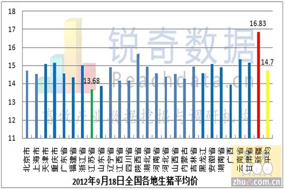 9月18日生豬市場(chǎng)行情較昨日,全國(guó)生豬價(jià)格最高地區(qū)為新疆,生豬平均價(jià)為16.83元/千克,最低地區(qū)為江蘇省,生豬平均價(jià)為13.68元/千克,兩地區(qū)差異非常明顯,全國(guó)大部分地區(qū)生豬行情震蕩調(diào)整。