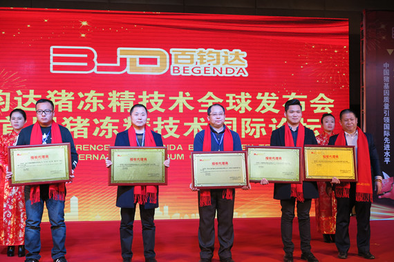 百鈞達(dá)科技發(fā)展(北京)有限公司是一家專業(yè)化從事豬冷凍精液生產(chǎn)與銷售的高新技術(shù)企業(yè),總部位于北京東部核心商業(yè)區(qū)朝陽(yáng)大悅城。公司致力于打造“豬冷凍精液國(guó)際第一品牌”,在推廣頂級(jí)公豬冷凍精液同時(shí),推廣深部輸精技術(shù)以及系譜查詢網(wǎng)絡(luò)數(shù)據(jù)終端,還為企業(yè)提供選種選配、動(dòng)物營(yíng)養(yǎng)、防疫滅病、建場(chǎng)規(guī)劃等技術(shù)服務(wù)。 2017年1月16日,百鈞達(dá)豬凍精技術(shù)全球發(fā)布會(huì)暨首屆豬凍精技術(shù)在北京東燕郊福成國(guó)際酒店隆重舉行。農(nóng)業(yè)部全國(guó)畜牧局總站黨委書記何新天,農(nóng)業(yè)部畜牧業(yè)司畜牧處處長(zhǎng)左玲玲,河北畜牧局局長(zhǎng)顧傳學(xué)、廊坊市農(nóng)業(yè)局副局長(zhǎng)劉建方、中國(guó)農(nóng)業(yè)大學(xué)教授王楚端、北京六馬集團(tuán)董事長(zhǎng)符開星、溫氏集團(tuán)副總裁蔡更元、上海祥欣總經(jīng)理韓雪峻、百鈞達(dá)董事長(zhǎng)周會(huì)鈞先生等嘉賓和領(lǐng)導(dǎo)出席本次發(fā)布會(huì)。 會(huì)議伊始,一場(chǎng)震撼人心的歌舞表演拉開了發(fā)布會(huì)的帷幕。 隨后,河北畜牧局顧傳學(xué)局長(zhǎng)、廊坊市農(nóng)業(yè)局劉建方副局長(zhǎng)、全國(guó)畜牧總站黨委何新天書記、中國(guó)農(nóng)業(yè)大學(xué)王楚端教授分別進(jìn)行大會(huì)致辭,并對(duì)此次會(huì)議的成功召開表示祝賀,預(yù)祝會(huì)議圓滿成功。 河北省畜牧局顧傳學(xué)局長(zhǎng)致辭 廊坊市農(nóng)業(yè)局劉建方副局長(zhǎng) 中國(guó)農(nóng)業(yè)大學(xué)王楚端教授 全國(guó)畜牧總站黨委何新天書記 百鈞達(dá)科技發(fā)展(北京)有限公司董事長(zhǎng)周會(huì)鈞先生做了《豬繁殖技術(shù)第二次革命-豬冷配繁殖技術(shù)》,周董介紹了公司簡(jiǎn)介,百鈞達(dá)致力于三個(gè)服務(wù)方向,將頂級(jí)種公豬基因放大五倍擴(kuò)繁,降低成本,應(yīng)用于商品豬生產(chǎn),為育種事業(yè)提供“保種/育種”服務(wù)(中科院動(dòng)物研究所的巴馬豬、中國(guó)農(nóng)大轉(zhuǎn)基因豬);為現(xiàn)代生物工程的研發(fā)及應(yīng)用提供上游技術(shù)支持。另外,周董介紹了豬冷凍技術(shù)的發(fā)展歷程,豬冷凍精液研究始于1960年代,當(dāng)時(shí)解凍后的精子在30%,2000年,英國(guó)Polge家族公司提升豬凍精活力到60%,仍不能滿足商業(yè)化推廣,僅用于保種和育種,百鈞達(dá)創(chuàng)新工藝和配方,凍精解凍后存活率達(dá)到74%--87%,實(shí)現(xiàn)了豬冷凍精液技術(shù)在生豬生產(chǎn)中的商業(yè)化應(yīng)用。 百鈞達(dá)豬凍精技術(shù)具有5大優(yōu)勢(shì),分別為:定格時(shí)間(定格精子生命時(shí)間,方便企業(yè)優(yōu)質(zhì)基因的運(yùn)輸、儲(chǔ)存及使用);效益一致(凍精產(chǎn)品已達(dá)到鮮精的分娩率及產(chǎn)仔數(shù)水平);輸精子少(凍精6-8億精子輸精,鮮精需要30-40億);降低成本(可降低養(yǎng)殖企業(yè)80%的公豬引種及飼養(yǎng)成本);提高效益(可助力養(yǎng)殖企業(yè)比鮮精繁殖提升30%以上的遺傳效益)。 百鈞達(dá)技術(shù)人員現(xiàn)場(chǎng)演示凍精解凍技術(shù)及精液活力演示 美國(guó)mofa公司吳衛(wèi)東博士做分享,吳博士將百鈞達(dá)凍精技術(shù)與國(guó)外數(shù)據(jù)對(duì)比,全面介紹了百鈞達(dá)凍精技術(shù)在世界范圍內(nèi)的先進(jìn)性,他說(shuō):“百鈞達(dá)凍精解凍后精子頂體的完整性超過(guò)了76%,這方面加拿大和美國(guó)還沒(méi)有完整的數(shù)據(jù),其配種所用的吸管數(shù)減到了6支(美國(guó)為8~10支),消耗有效精子數(shù)減少了三分之二,也就是說(shuō)用百鈞達(dá)凍精配種可擴(kuò)大配種系數(shù)三倍。” 上海祥欣總經(jīng)理韓雪峻先生 上海祥欣總經(jīng)理韓雪峻先生就雙方合作發(fā)表講話,韓總認(rèn)為將來(lái)的趨勢(shì)是精液取代公豬,加構(gòu)公豬站。韓總說(shuō):“我是學(xué)繁殖專業(yè)出身,做過(guò)凍精技術(shù),所以跟百鈞達(dá)的合作非常愉快,經(jīng)過(guò)了一年,我們合作生產(chǎn)的第一批冷凍精液已經(jīng)出口到俄羅斯,在祥欣自己的種豬場(chǎng)也有應(yīng)用,相信在不久的將來(lái),由百鈞達(dá)豬凍精技術(shù)生產(chǎn)的帶有祥欣基因的種豬將會(huì)走向全國(guó)乃至世界”。 百鈞達(dá)科技發(fā)展(北京)有限公司總裁許建云先生做《百鈞達(dá)戰(zhàn)略規(guī)劃》主題演講。2014年成立百鈞達(dá),定位豬冷凍基金國(guó)際第一品牌。 利用大數(shù)據(jù)互聯(lián)網(wǎng)技術(shù)在商品豬的應(yīng)用,直接銷售凍精,利用事業(yè)共同體—時(shí)間戰(zhàn)場(chǎng),來(lái)打造百鈞達(dá)團(tuán)隊(duì),通過(guò)技術(shù)創(chuàng)新、服務(wù)創(chuàng)新、管理創(chuàng)新、資本經(jīng)營(yíng)等完成百鈞達(dá)的使命是助推全球養(yǎng)豬業(yè)騰飛。 百鈞達(dá)2021年是要做到800個(gè)億,做到上市,2017年是銷售3000萬(wàn)業(yè)績(jī)(利潤(rùn)600萬(wàn))。 溫氏集團(tuán)副總裁蔡更元教授發(fā)表講話,蔡教授表示創(chuàng)新是溫氏發(fā)展的源動(dòng)力,溫氏是一個(gè)開放的企業(yè),行業(yè)領(lǐng)先的技術(shù),我們都愿意去學(xué)習(xí),目前初