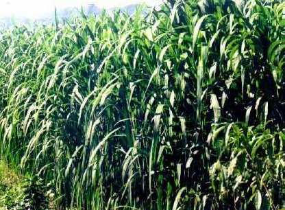 | 皇竹草,禾本科,其莖稈似竹屬草本,植株特別高大,所以名曰"皇竹草"。皇竹草是由象草和美洲狼尾草雜交育成的高產(chǎn)物質(zhì)禾本科牧草,與1996年從哥倫比亞引種栽培成功。該牧草表現(xiàn)出了易栽、易管、產(chǎn)量高,用途廣,飼養(yǎng)效果好的強(qiáng)勁經(jīng)濟(jì)優(yōu)勢(shì)。同時(shí),皇竹草的栽培能夠帶動(dòng)養(yǎng)殖業(yè)大發(fā)展,形成大農(nóng)業(yè)的良性循環(huán),給社會(huì)帶來(lái)顯著的經(jīng)濟(jì)效益、社會(huì)效益和生態(tài)效益。因而皇竹草被譽(yù)為"牧草之王"。 皇竹草的生長(zhǎng)有如下特征: 生長(zhǎng)速度快:在鄂西北的氣候條件下,當(dāng)年春季栽培的莖節(jié)苗,于11月下旬停止生長(zhǎng),在長(zhǎng)達(dá)8個(gè)~9個(gè)月的生長(zhǎng)時(shí)間內(nèi),植株高可達(dá)4米左右,最高可達(dá)5米以上。 根系發(fā)達(dá):最長(zhǎng)根系可達(dá)3米~5米,根系密集,須根發(fā)達(dá),種植在河邊、溝邊、水庫(kù)邊、荒坡上可防洪護(hù)堤,保持水土。 莖稈結(jié)實(shí):皇竹草不經(jīng)刈割的莖稈可達(dá)2厘米~3厘米粗,最粗可達(dá)4厘米。莖稈可作架材,也是很好的繁殖材料。皇竹草的整體抗風(fēng)能力強(qiáng),種植在地邊、果園四周可作綠籬、防風(fēng)林等。 分兜能力強(qiáng):春栽一段莖節(jié)苗,成活后在不到2個(gè)月的時(shí)間內(nèi)能分20株~25株,成叢狀,似窩竹。 鮮草產(chǎn)量高:皇竹草生長(zhǎng)量大,一般畝產(chǎn)鮮草可達(dá)20噸~25噸。一年內(nèi)可連續(xù)5次~6次刈割鮮草。鮮草葉片質(zhì)地柔軟,莖稈脆嫩,適口性好,是草食動(dòng)物的理想飼草。同時(shí),也可將鮮草刈割后曬干,一般畝產(chǎn)干草3噸~5噸。 鮮草營(yíng)養(yǎng)豐富:經(jīng)測(cè)定皇竹草嫩葉含粗蛋白18.5%,總糖含量達(dá)8.3%,含有17種氨基酸。按年畝產(chǎn)鮮草20000公斤~25000公斤折算,可相當(dāng)于10畝~12畝玉米的蛋白含量。不論是鮮草,還是青貯或風(fēng)干加工成草粉,都是飼養(yǎng)各種草食畜禽和魚(yú)類(lèi)的好飼料。特別是用皇竹草喂牛、羊、兔、鵝、魚(yú),基本上可不用精料,可大大降低飼養(yǎng)成本。 栽培簡(jiǎn)單粗放:只要在栽植之前,整好地,施足底肥,栽植后注意供水保墑,苗子在一個(gè)星期內(nèi)就能生根生長(zhǎng),并萌芽分蘗。 繁殖系數(shù)大:春栽一段莖節(jié)苗,到秋末就是20多根長(zhǎng)達(dá)3米以上的莖稈,每個(gè)莖稈可截種條20個(gè)以上,最大的繁殖系數(shù)可達(dá)400以上。 根兜可越冬:宿根性能好,耐寒性較強(qiáng),一般在-2℃以上就不會(huì)受凍,如果將其根兜采取保溫措施,可安全越冬,第二年萌發(fā)新芽,可提前一個(gè)月刈割鮮草。 皇竹草有很好的開(kāi)發(fā)利用價(jià)值:皇竹草葉片鮮嫩多汁,口感好,適口性強(qiáng),是各種草食畜禽和魚(yú)類(lèi)的最佳飼料。它生長(zhǎng)快、生長(zhǎng)量大、繁殖系數(shù)大、栽培管理簡(jiǎn)單、營(yíng)養(yǎng)豐富,為難得的牧草新品種。皇竹草除了用以鮮食外,還可加工成干草和草粉。 皇竹草是造紙、建材的新型材料。據(jù)測(cè)定,皇竹草纖維1.48hum,寬30um,纖維含量為25.3%,是甘蔗的2倍;其蒸煮時(shí)間、漂白度、細(xì)漿得率均優(yōu)于麥秸、甘蔗,適合制造較高檔的紙品,同時(shí),還可以造質(zhì)優(yōu)價(jià)廉的纖維板用于建筑裝飾工程。 皇竹草是退耕還草保持水土和治理荒灘的理想植株。皇竹草具有發(fā)達(dá)的根系,生長(zhǎng)迅速,能夠在較短的時(shí)間內(nèi)形成須根網(wǎng)絡(luò),從而牢固地?cái)r截水分和泥土,防止水土流失,對(duì)綠化荒山荒坡,放風(fēng)固沙都具有重要作用。皇竹草新陳代謝旺盛,地下的根部在代謝后就成了很好的有機(jī)質(zhì)肥料,有利于土壤的改良。 皇竹草是難得的綠化品種。皇竹草屬四碳植物,植株高大,葉片挺拔,莖節(jié)灰白,光滑發(fā)亮,有較強(qiáng)的光合作用面,對(duì)凈化空氣,吸收空氣中的有毒氣體具有較強(qiáng)的作用。在房前屋后、廠礦附近、公園、路旁、溝邊、渠旁連片種植,不僅具有較高的觀賞價(jià)值,還可以降低空氣的污染程度,改善人們的生活和工作環(huán)境。因此,皇竹草可作為綠化品種加以推廣。