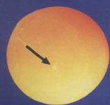 第二天:胚盤已擴展一倍并被紅色的血管圍成櫻桃形或橢圓形,這些血管即胚胎的卵黃囊循環(huán)的邊緣血管----緣竇。胚盤中心有一變曲的透明體----胚胎,透明體中可見一搏動著的小紅點,即原始心臟。 |