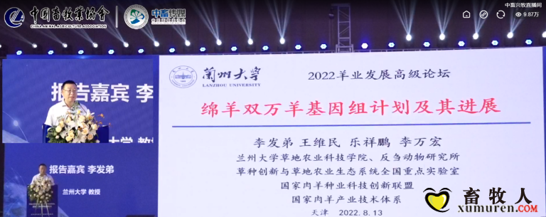 2022年8月13日,中國天津種業振興大會-肉羊種業高峰論壇暨2022羊業發展高級研討會在天津隆重召開。 國家肉羊技術體系崗位專家、蘭州大學草地農業科技學院反芻動物研究所所長李發弟教授受邀分享了“綿羊雙萬羊基因組 ...